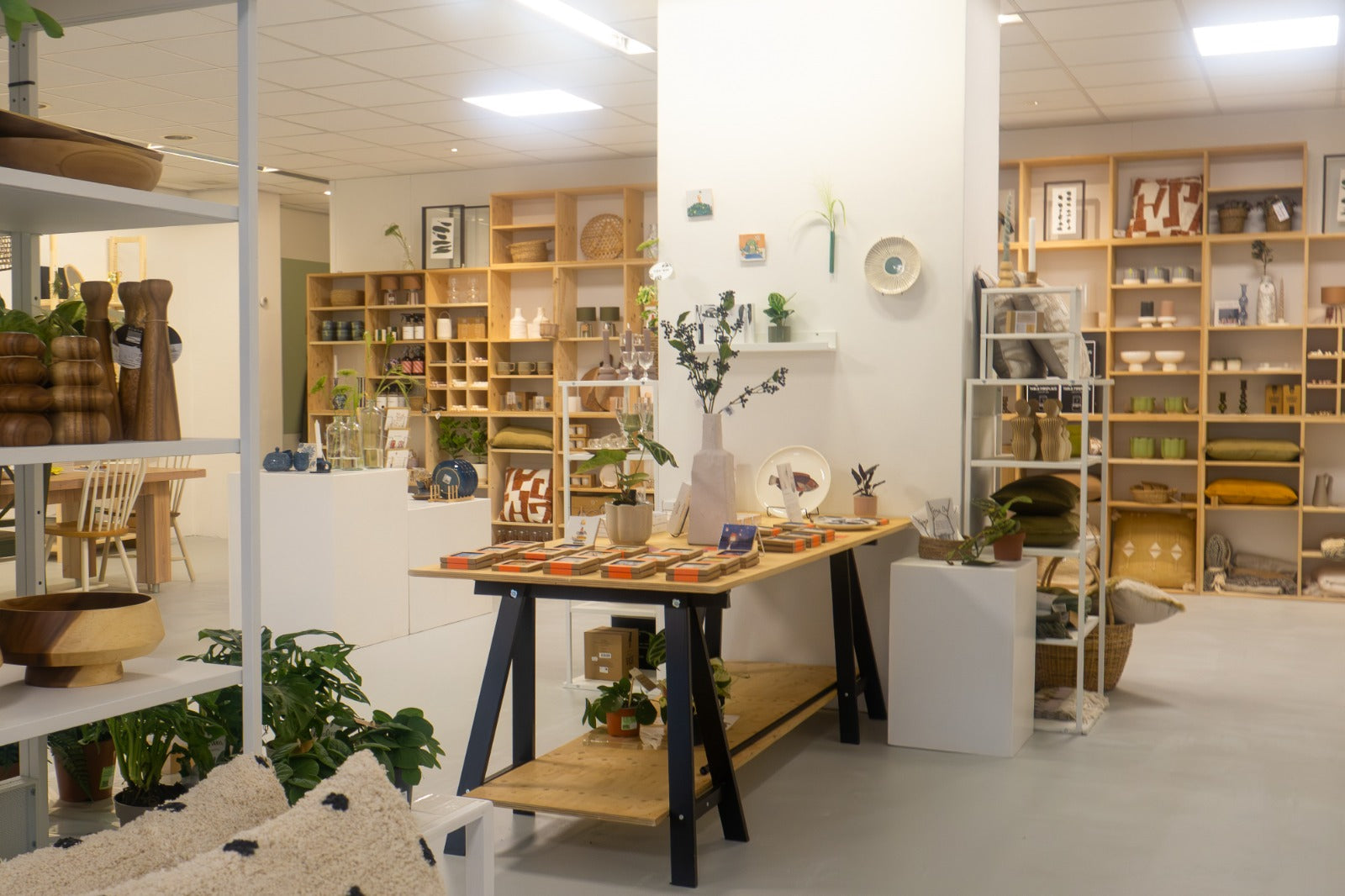 Struinen langs sfeervolle woonaccessoires en planten.